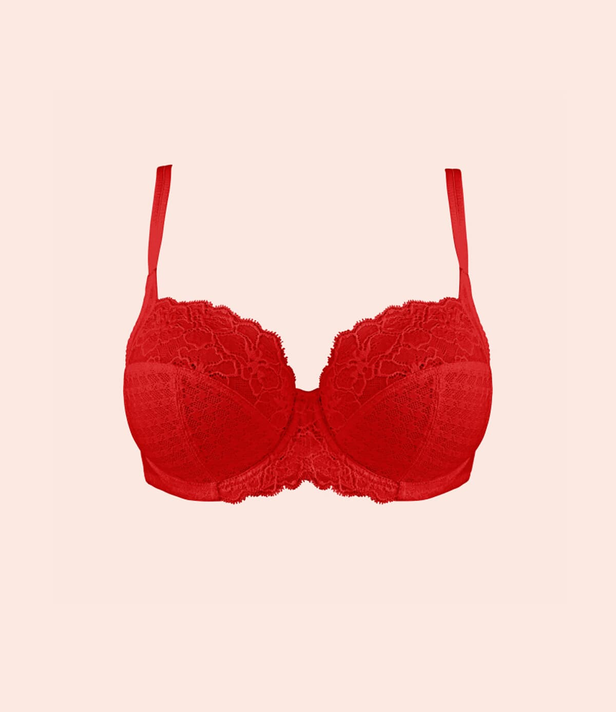 This scarlet lace bra is a flawless blend of elegance and comfort. Crafted with intricate floral lace and underwire cups, it provides a lifted silhouette while keeping things sensual. The adjustable straps and stretch band ensure a perfect fit, making it ideal for everyday wear or romantic occasions.