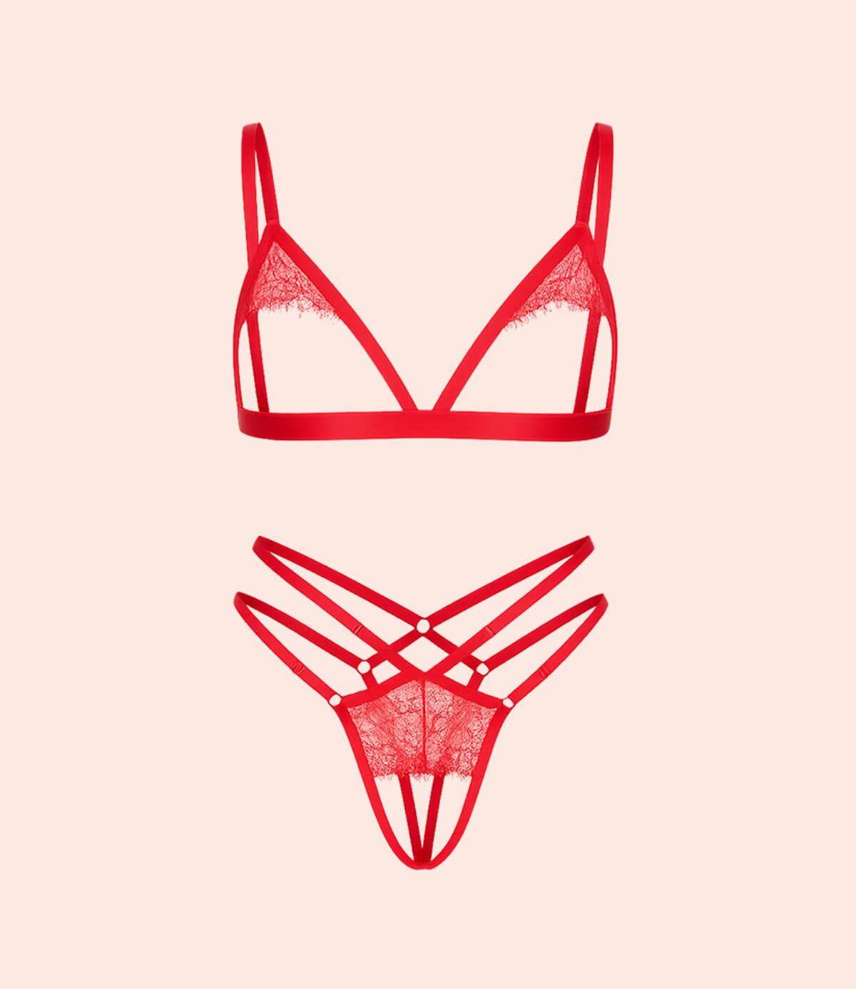 This white strappy lingerie set is a striking combination of softness and edge. With mesh cups and harness-inspired straps, it creates a flattering silhouette while offering comfort and support. Perfect for confident wearers seeking bold, minimal design with an elegant and sensual presence.